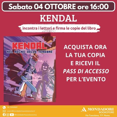 Kendal presso la Sala EDUCAMEDIA - Cinema Teatro Don Bosco - Via Dei Salesiani 19 - Roma (MA Giulio Agricola) incontra i lettori e firma le copie del libro "Nel regno delle tenebre" edito da Electa Junior